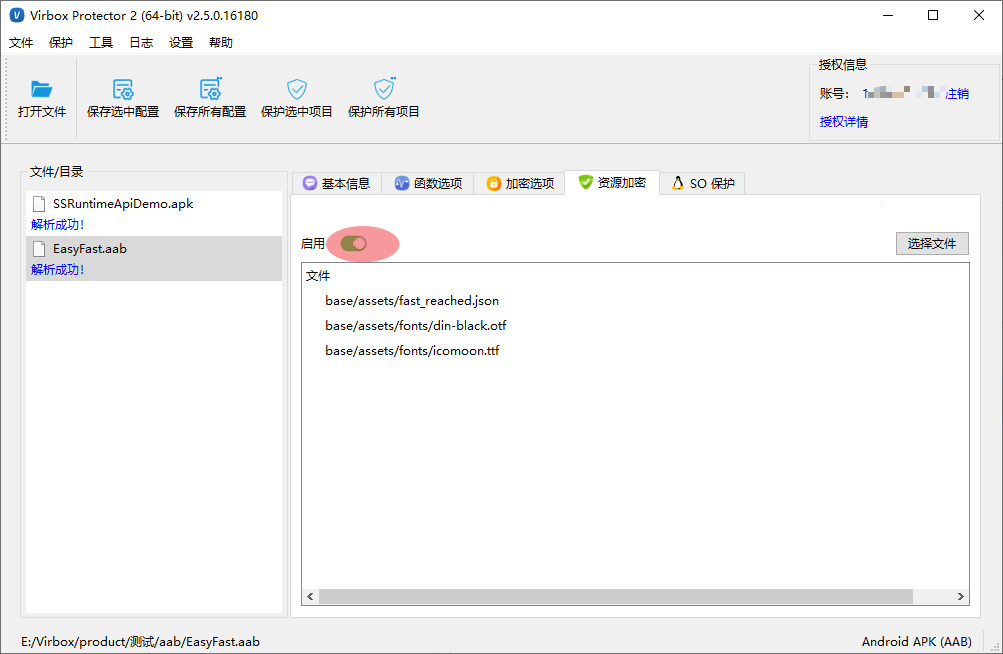 加密APK/AAB中的assets下的文件,支持图片、配置、脚本等文件类型。